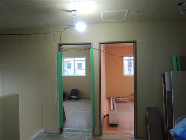 壁・天井共下地の見える部分はほぼなくなってきました。