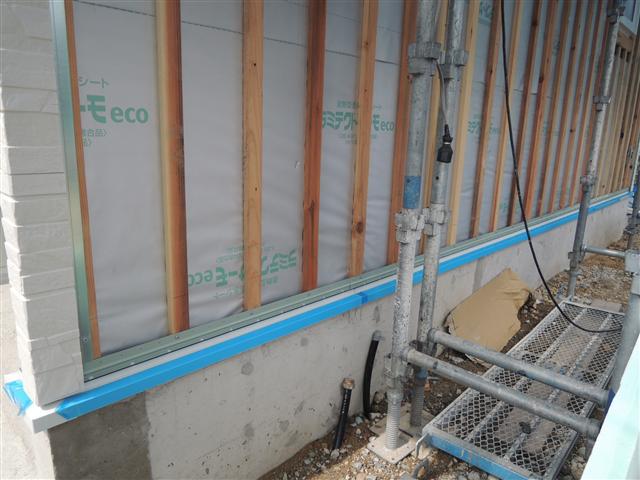 外壁やさん乗込みです。「土台水切り」、「コーナー材」取付けから作業開始です。