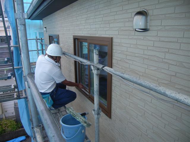 外部足場解体前のクリーニング作業です。