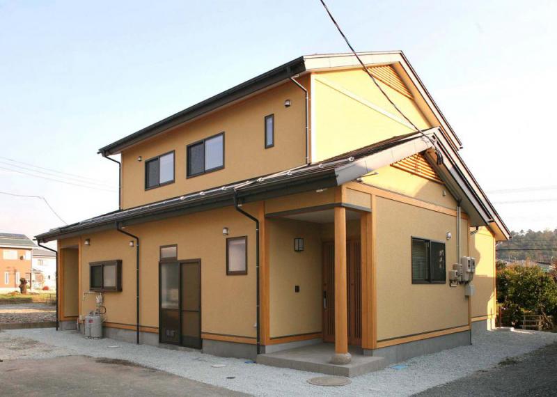 落ち着いた茶系の色で仕上げた和風の住まい 和室は赤土を使った伝統の塗り壁仕上げ 広縁の奥には水屋を設けている 玄関で餅つきを行うため広く天井も高くしている. 外断熱と内断熱のダブル断熱で、少ないエネルギーで過ごせる室内環境ができあがった。E-mailはこちらから