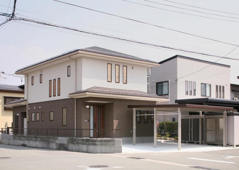 外用物置も最初から計画しピッタリ納めて外観もスッキリ 17帖のLDK、キッチン奥には食品収納室が隣接し勝手口がある。 掘りコタツを設置した和室は、玄関ホールから直接お客様を通せる動線にしている。 玄関ドアの採光窓と下足収納脇に窓を配置し、明るい玄関ホールにしている。 2階ホールの物干スペースには部屋干しファンを設け、快適な部屋干し空間にしている。E-mailはこちらから
