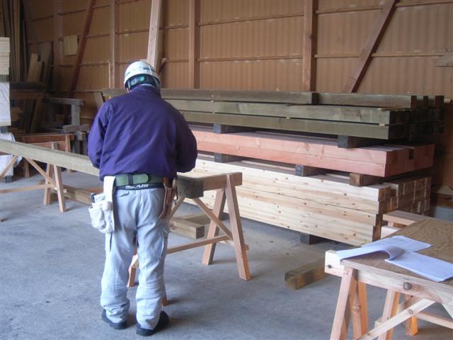 大工さんが事前加工開始です。