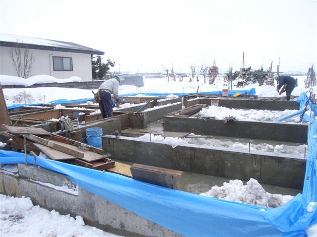 型枠解体・片付けを行い、ようやく基礎工事が終了です。