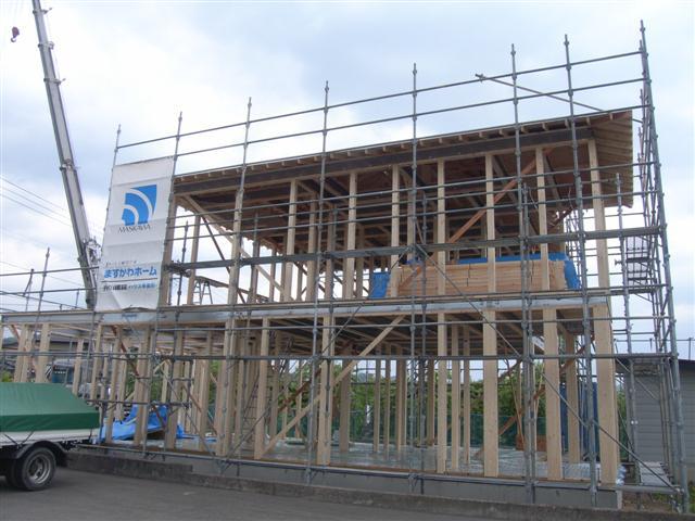 ▼大江町 SS様邸新築工事 18 軸組み建て方2日目 『テクノストラクチャーで建てる長期優良住宅』