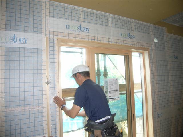 内部、大工さんは、大壁和室の窓枠取付け工事作業にはいっております。