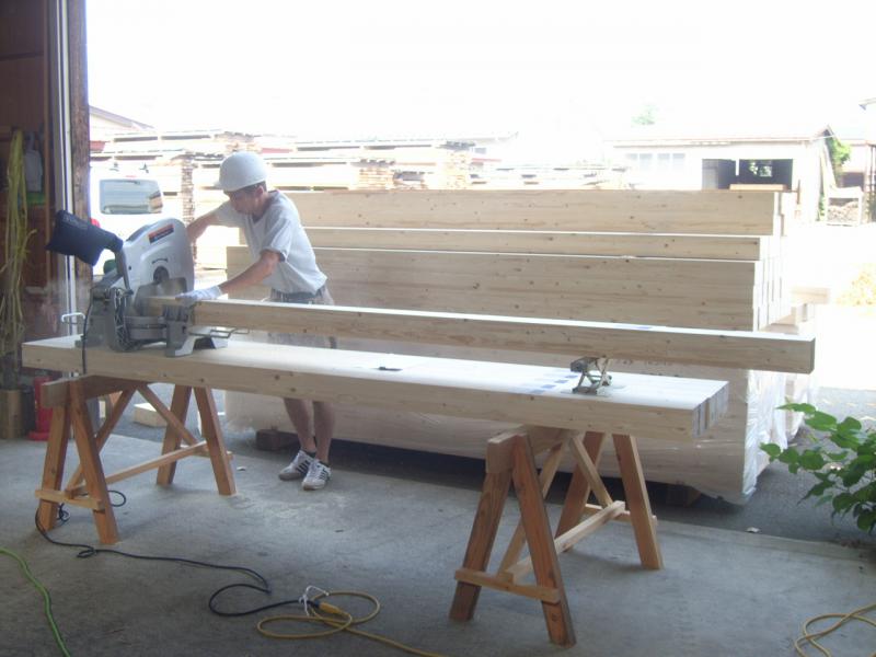 大工さんが建て方前の事前加工開始です。