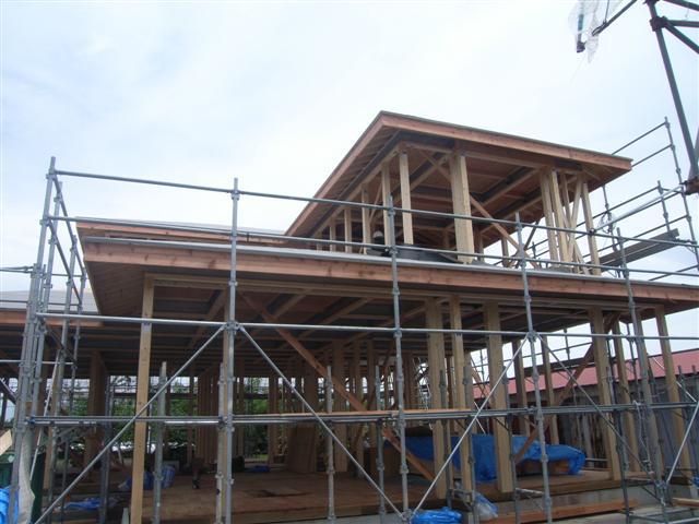 建て方も無事終了し、筋交い、ホールダウン金物等、構造に関わる金物取付をおこなっております。