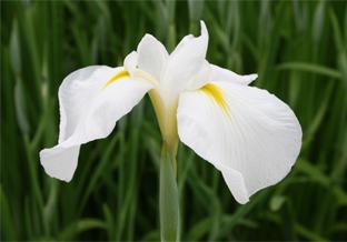 外花被・内花被・花柱すべてが純白。「葉山の雪」に比べ、長弁で葉の厚みが薄く背丈が低い。