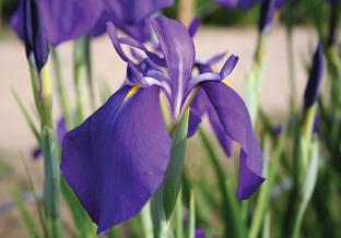 長井市指定天然記念物の代表花とされる花。ルリ紫紺色の深みのある色合いが美しい。内花被は外花被と同色で花弁の中心に一本白い筋が入っている。