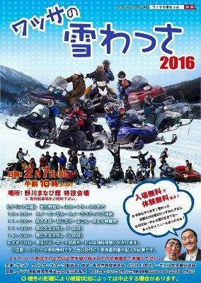 ながい雪灯り回廊まつりの一環として、大好評の「ワッサの雪わっさ」が今年も開催されます!スノーモービル試乗体験や雪上宝さがし等があります♪巨大すべり台、スノーラフティングなど子供から大人まで楽しめる企画満載の「ワッサの雪わっさ」に参加してみませんか? 日時:平成28年2月7日(日) ※ながい雪灯り回廊まつりの次の日です。 ※参加費無料!!当日受付♪場所:野川まなび館 特設会場受付時間:9:30〜15:00までお問合せ: 0238-84-2296【この記事は、ながいファン倶楽部のブログです】☆毎月1日・15日にファン倶楽部会員様へメールマガジンを配信♪▼お申込はこちらから! ※ながいファン倶楽部のブログで使用している写真は、私たちが 一生懸命撮った写真です。勝手にお使いにならないでくださいね♪