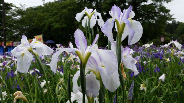 残念ながら今日は、朝から雨が降り続く湿度90%のジメジメとした一日となりました。予報では明日から晴れ間が続く予報となっております。梅雨に濡れて佇む、あやめの艶姿もまた格別な美しさがあります。お越しの際は、是非ご堪能ください!!気温・湿度共に高い日が続きます。水分補給や暑さ対策をお忘れなく(´;ω;`) 〜あやめの開花状況をお知らせします〜▲園内の開花状況は、見頃となっております。先週疎らに咲いていた長井古種は、ここ数日の高い気温で一斉に開花し、すべての品種が咲き揃いつつあります。今週は、満開の色とりどりのあやめが園内を訪れるお客様の目を楽しませてくれるはずです。なお、ご覧のとおり園内には18日発生の地震の影響はございません。安心してお越しくださいませ!!