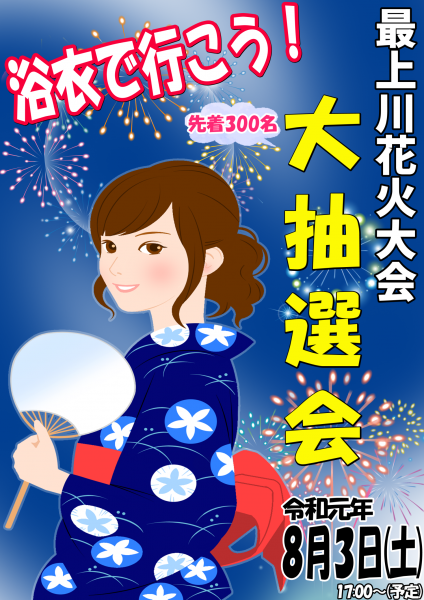 ▼最上川花火大会「浴衣で行こう!「大抽選会」」