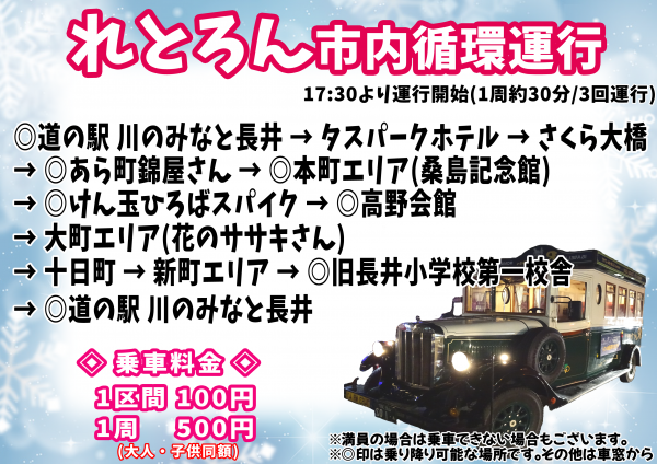 ▼雪灯り回廊まつりにて”れとろん”市内循環運行を行います!