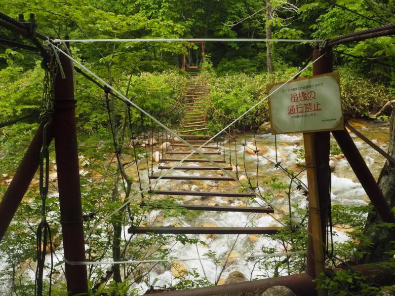 祝瓶山について、長井市の祝瓶山荘から登る登山道に設置された角楢(かくなら)吊橋のワイヤーが腐食しているため、通行禁止をお願いしております。ワイヤーが切れかかっており、歩行者の荷重に耐えることができないと判断したため、吊橋の通行止めの措置をとりましたのでご理解くださいますようお願い申し上げます。また、例年6月上旬頃に吊橋の歩み板が設置されておりましたが、これに伴い設置を見合わせております。 現状、長井市側から祝瓶山に登ることは出来ません。そのため、祝瓶山には小国町側からの登山をお願いいたします。 ●詳細・お問い合わせ長井市 お知らせページ商工観光課 観光振興係電話番号:0238-87-0827 ファックス:0238-88-5914