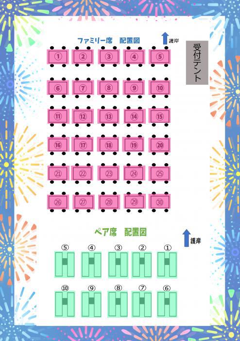 第28回 最上川花火大会の有料席の販売を開始しております! ファミリー席(4人/テーブル・イス) 3,000 ※受付終了ペア席(2人/ビニールベット仕様) 2,000 ※受付終了 受付開始日:7月21日(金)〜(席が埋まり次第受付終了)平日9:00〜17:00まで(土日祝日は受付できませんのでご注意ください)お問い合わせ先:長井市観光協会 TEL/0238-88-5279 《 最上川花火大会 当日の注意事項 》・当日の受付は午後6時からになります。・花火大会は、雨天決行で行います(強風・大雨の場合は翌日に延期) 万が一、6日以降の延期の場合でも利用可能です。・雨天の場合は、雨具の準備をお願いします。・有料席ご購入後、自己都合で利用しない場合は返金できかねますのでご了承ください。・チケットは紛失しないよう、当日まで保管ください。・花火打ち上げ中は、該当等の灯りが消灯されますので、簡易ライト等のご準備ください。 当日の会場配置図については、PDFでご確認ください! ☆.。.:*・°☆.。.:*・°☆.。.:*・°☆☆.。.:*・°☆.。.:*・°☆.。.:*・°☆席の空き状況に関しましては随時SNS(ストーリー)でも更新いたしますので、お電話の際には是非ご確認ください。【長井市観光協会 公式アカウント】FacebookInstagram☆.。.:*・°☆.。.:*・°☆.。.:*・°☆☆.。.:*・°☆.。.:*・°☆.。.:*・°☆