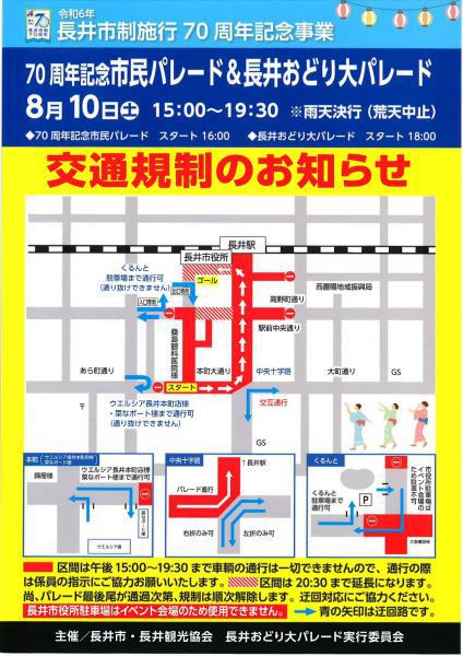 ▼70周年記念市民パレード&長井おどり大パレード 交通規制のお知らせ