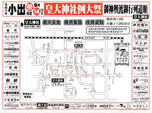 日時:9月14日(皇大神社)・9月15日(白山神社)時間:ご祈祷 12:00 出獅子 12:30 白山神社と皇大神社の例大祭の道順が公開されました。長井市内を練り歩くおしっさまをぜひご覧ください。詳しい道順等はPDFをご覧ください。