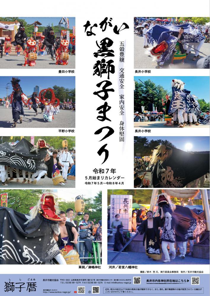 【ながい黒獅子まつりカレンダー】好評販売中!令和7年5月始まりカレンダー(R7.5月〜R8.4月)いよいよ長井市の黒獅子シーズンに突入しました!5月、GWから毎週のように各所で例祭が行われますGW帰省の際のお土産に、黒獅子ファンの方へのプレゼントにいかがでしょうか?【ながい黒獅子まつりカレンダー】販売価格/1,000円(税込)販売場所/◎道の駅 川のみなと長井 ◎八文字屋長井店 ◎新来軒 ◎春まちカフェ ◎長井市中央コミセン ◎長井市致芳コミセン◎長井市西根コミセン◎長井市伊佐沢コミセン※カレンダーに掲載の写真は前年のながい黒獅子まつり ☆.。.:*・°☆.。.:*・°☆.。.:*・°☆☆.。.:*・°☆.。.:*・°☆.。.:*・°☆【長井市観光協会 公式SNS】長井市観光協会のFacebook・Instagramでは、黒獅子の情報をはじめ、開花状況やイベント情報を発信中!ぜひフォローお願いしますFacebookInstagram☆.。.:*・°☆.。.:*・°☆.。.:*・°☆☆.。.:*・°☆.。.:*・°☆.。.:*・°☆
