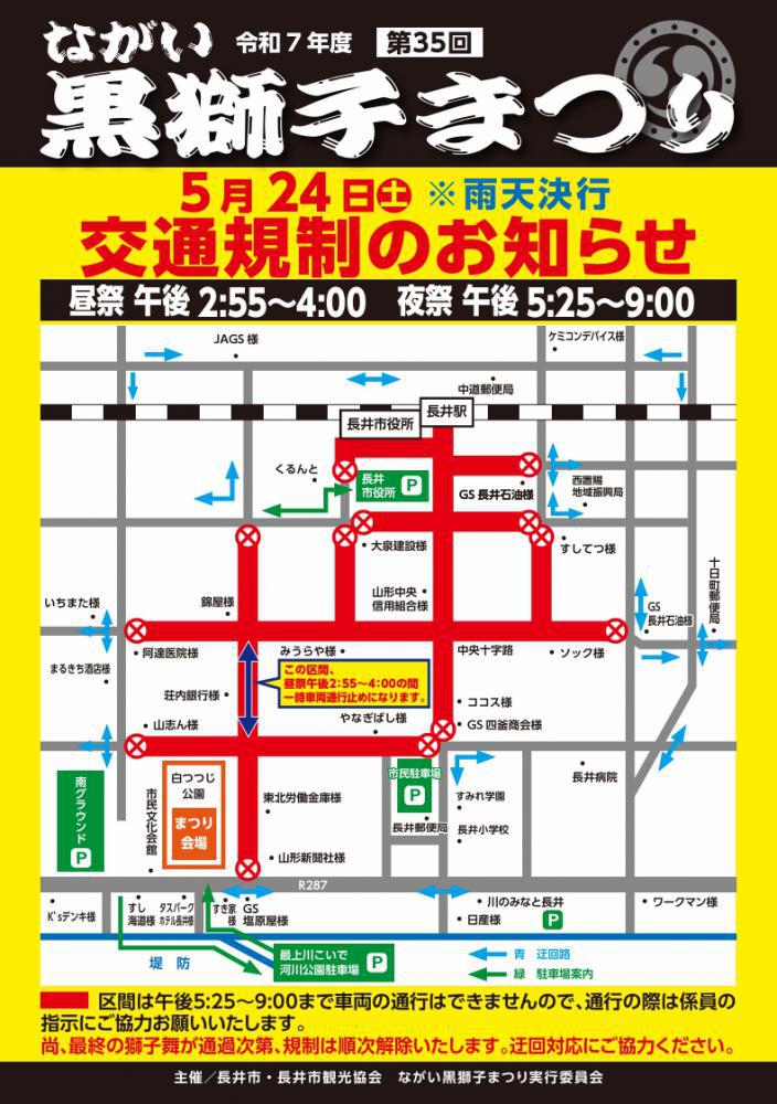 ▼【交通規制のお知らせ】5/24(土)ながい黒獅子まつり