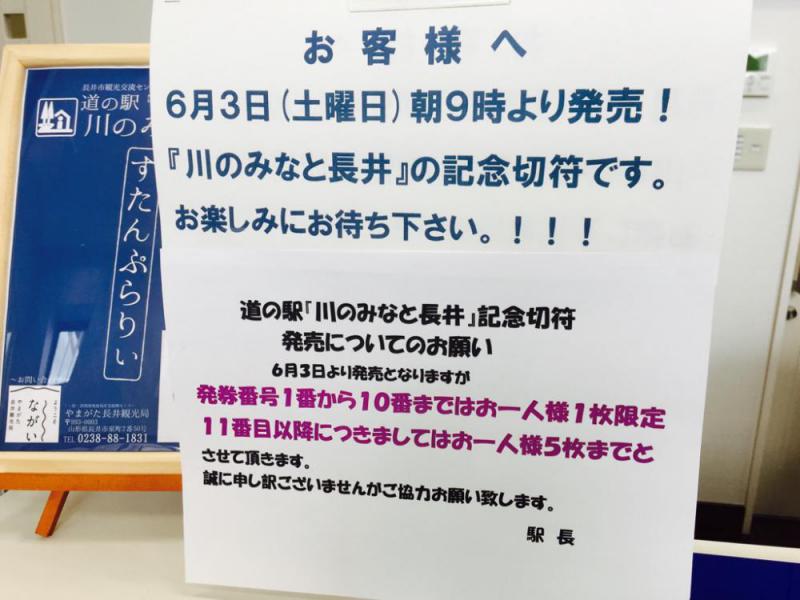 ▼明日、道の駅「川のみなと長井」記念きっぷが発売となります!