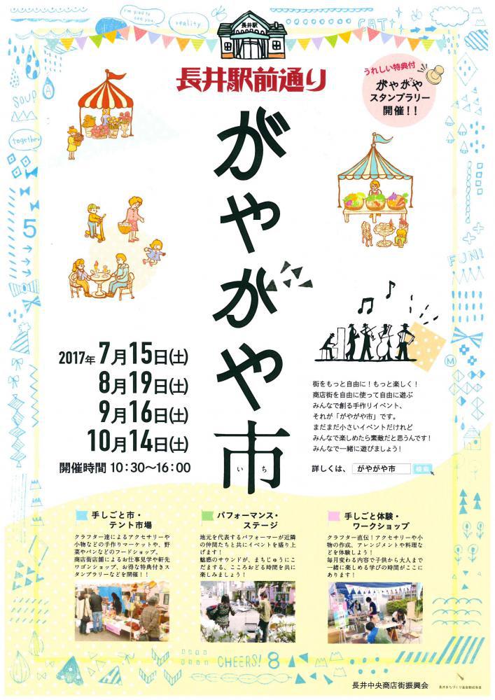 長井駅前通りにて毎月開催されているがやがや市が今月も開催されます!「街をもっと自由に!もっと楽しく!商店街を自由に使って自由に遊ぶみんなで創る手作りイベント」をテーマに行われる、小さくとも温かいイベントです。当日はワークショップやストリートパフォーマンスなど見どころ盛りだくさん!!お時間ある方は道の駅にお車を止め、一度遊びに見に行ってみておごやい♪