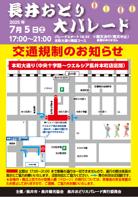 ▼長井おどり大パレード7/5(土)【交通規制のお知らせ】