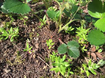 | ***いちごちゃん***  植物って、きっと目があるよね? 農具も持っているようね? 私の庭のイチゴが、 自分で耕しているよ。 いつも不思議に思ってる 2016.06.06:Copyright (C) べにちゃんアルバム ▼この記事へのコメントはこちら | ゲストさんようこそ ■参加者数