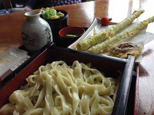 あやめそば舟越にて、期間限定のアスパラ麺。