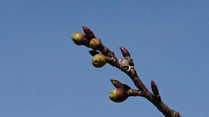 標本木桜蕾アップで撮影しました。だいぶ丸くなってきました。開花を待つ桜並木、満開になると見事ですよ
