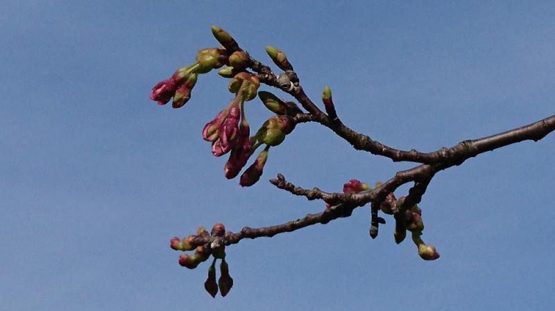 開花、もう間もなくです。丸くて赤い蕾が、細長い赤い花芽に変わってきています。この分だと、開花宣言は4月12日かと思われます。そのための準備として、舟場十字路に、立て看板を出しました。市民の皆さん、最上川桜づつみに、お花見においでください。4月17日(日)が満開と思われます。