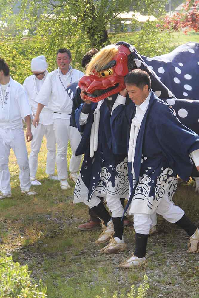 移動して直ぐに丁度よく毘沙門天の獅子舞いと出会った。