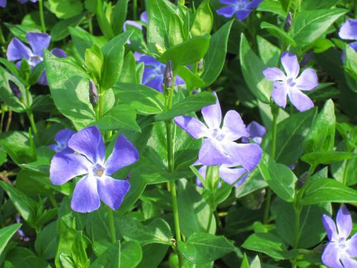 大型連休の喧騒や悪天候でしばらく散歩をサボっている間に、いつもの散歩路の景色は一変していましたタンポポは綿毛に変り、見なれぬ花がひっそりと咲いています花のはでやかさはありませんがひかえめな青紫色が上品で気に入りました図鑑を繰って「ツルニチニチソウ」とアタリをつけたのですが・・・・頭上には「ミヤマザクラ」「ウワミズザクラ」が白くかがやき、「フジ」の房が垂れさがっています
