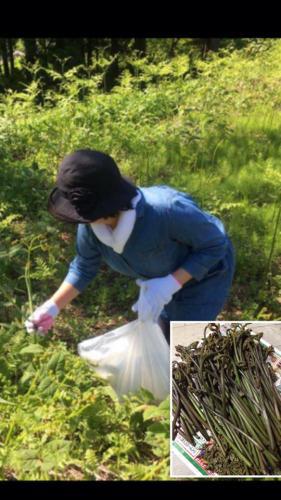 Enjoy Natures' Gift...Picking Warabi in the nearby woods for a delightful treat.. One can simply enjoy Warabi as blanced, pickled in soysauce and ginger,in miso soup and nimono. 自然からの贈り物 林のそばでワラビを摘んで、美味しい食事へ。 おひたしにしたり、しょうがと醤油で漬けたりお味噌汁や煮物にして楽しむことができます。