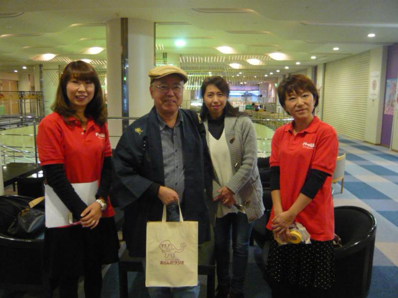 今日は「文化の日」山形県・長井市のコミュニティFM「おらんだラジオ」の開局2周年のイベントがあった。何でも首を突っ込む英さん。勝手に乱入し、豪華記念品をもらってきた。我が家の家宝にしよう。ところで、これは力士?いや、違う。イケ麺パーソナリティの「たっぴろくん」だ。雨交じりの天気の中、12時間・耐久マラソンに挑戦。これに備えて6キロ絞ったとのこと。見事完走。おめでとう!!!!!乱入したスタジオには、ニューフェースの皆川さん。カワユイ!そして、花にも負けず燦然と輝く嘉子さん。カワユイ!さらに、あこがれの幸子さんとのツーショット。カワユイ!ヒンシュクのバイヤー「英さん。」加齢なる、いや華麗なる文化の日であった。エネルギーをたくさんもらった。それにしても、パーソナリティがみんな美人なのはなぜだろう。それは当然!「水と緑と花の長井」だからさ。・・・・・納得!晩秋のシンフォニー。第3楽章・・・・・