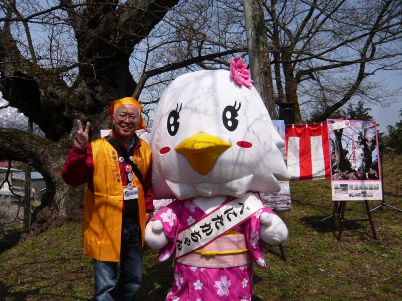 昨日の「置賜さくら回廊」のオープニングイベント。実は英さん。も、しっかりと参加していたのです。「ながい黒獅子の里案内人」の英さん。まずは、白鷹町のキャラ「べにたかちゃん」とのツーショット。いつものオープニング看板。地元、浅立のお母さん方、振る舞いモノの仕込み、ご苦労さんでした。そして、完璧な音響を演出するお兄さんの緊張感もナイス。これは地元、白鷹町の「加茂川酒造」さんの特注乾杯酒。桜は、開く寸前。英さん。は、丘の上から「灰(?)」を撒く役であった。思い切って撒いてやった。ザマーミロ(爆)そしたら、こんな笑顔が咲いたお姉さんがいた。そして実は、英さん。あの「あやめちゃん」とも会ったのですよ。奇跡の出会いでした(嬉)あやめちゃん・・・・・清楚な「長井古種」のあやめのイメージにピッタリ。素敵な女性でした。しっかりツーショットもいただきました。と・・・・・と・・・・・・あの画像はどこに?あれは、マボロシの出会いだった?またいつか会えるといいな・・・・・ヒンシュクのバイヤー・・・・・「英さん。」To Be Continue・・・・・
