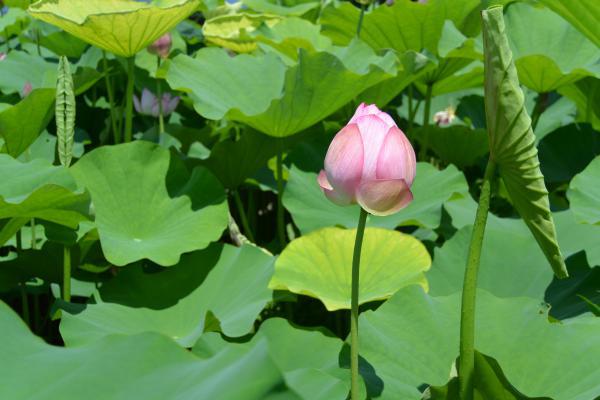フラワー長井線時庭駅北側ハス田のハスの花が咲き始めた。ただのハスではない。今から半世紀以上も前に、2000年の眠りから覚めて開花したとして有名な大賀ハスだ。昨年初めて見て感動したあの古代ピンクが今年も帰ってきた。今年は少し開花の時期が遅いようだが、その分長く楽しめるということだろう。最盛期にはラッピング列車とのツーショットも楽しみだ。カメラ片手に通ってミッペ。ハス田の全景はこれ(時庭駅側から)とぼけた賽銭小僧も健在だ(栽培ケーゾクに協力ヨロシク)
