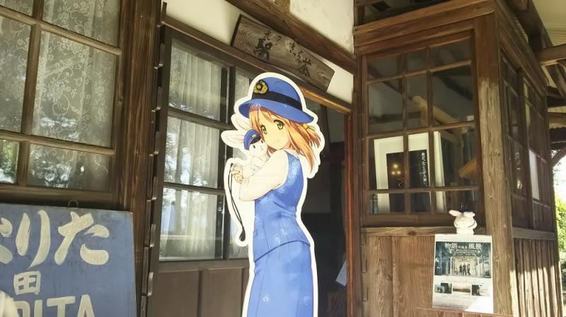駅のホームには、モッチー家族に続いて、鮎貝りんごちゃんも登場! ご対面されたオジサンは、「羽前成田駅のシックな駅舎にはりんごちゃんが映えますね。いわゆる一つのインスタ映えですね。」と、真面目にシャッターを押していました。無人の駅舎でも、こんな風に出迎えてもらえればうれしいですし、駅に降りてみようかな、と思いませんか?
