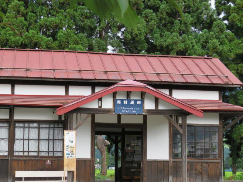 正面に設置されていた駅名看板が、国鉄時代風の看板に取り換えられました。紺色のベースに国鉄文字で書かれています。以前から、「懐かしい感じの看板だといいなあ。」と語っていましたが、この程、山形鉄道の社員さんが制作してくれたものです。今までの看板では見えなかったのですが、正面の持ち送りの部分にも素敵な意匠が施されているのが見つかりました。それにしても山形鉄道社員さん、暑い中ご苦労様でした。そして素敵なプレゼントをありがとうございました。