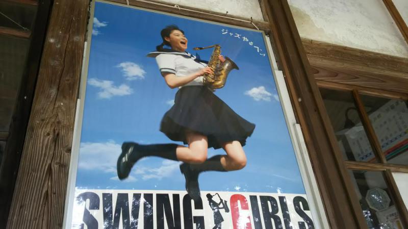8月14日○山がた来たよ。(あやの)○駅の雰囲気がめっちゃ好き。 8月15日スウィングガールズのポスターを見て懐かしくなり、白兎駅から歩いて戻って来ました。この辺でロケしていたとは知らず、白兎駅もロケで使われていたとは!レンタルして観ようと思います。(西)