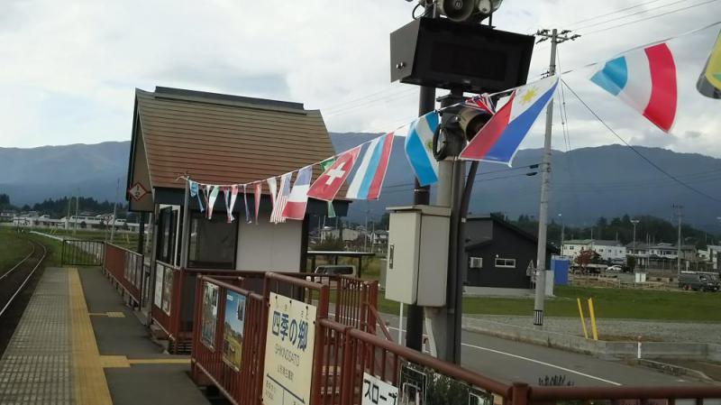 長井線祭りまであと4日となりました。今年は、フラワー長井線開業30周年ということで、各駅に万国旗を飾ってお祝いしようとしてます。昨日、近くの駅を見て来たら、それぞれ頑張って飾りつけていました。 長井線開業100周年の際の「スマイルプロジェクト」には及びもつきませんが、せめて全駅で応援の旗を掲げましょう。Show the flag! スマイルプロジェクトの様子はこちら⇒ http://flower-liner.jp/smileproject100_movie/
