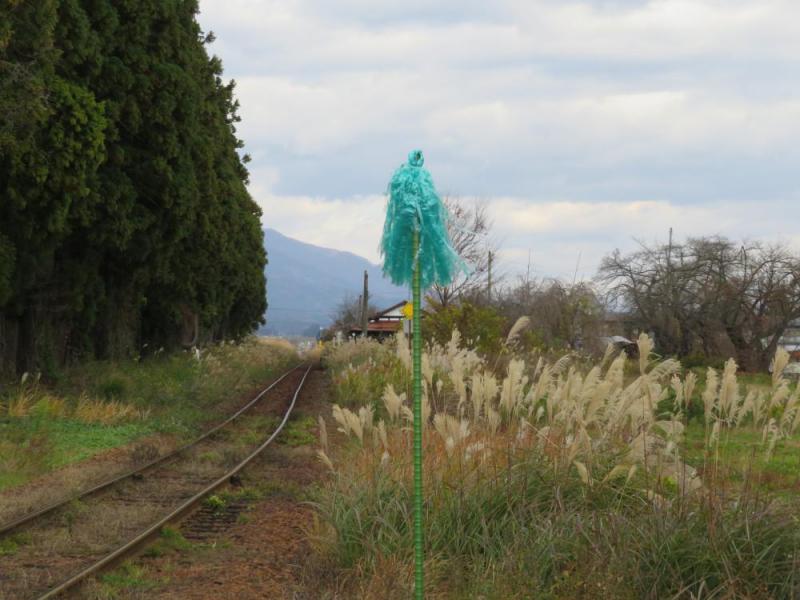 冬タイヤへの交換を済ませた方も多いのではないかと思います。フラワー長井線でも、冬将軍に備えて、駅のホームと踏切付近に青い旗が設置されました。除雪車の運行に対する標識のようです。すでに踏切の前後には、雪かき車警標が設置されていますが、さらに詳細な作動位置を表示するためでしょうか。山形鉄道では除雪車を運転するのは保線工の社員だそうです。深夜あるいは早朝の大変な仕事になりますが、無事故で安全な運行となるよう祈っています。頑張ってください。雪かき車警標については「古いブログ:鉄道豆知識館」をご覧ください ⇒ http://samidare.jp/orada/note?p=list&c=411411