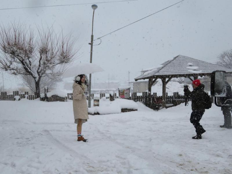 時折、冷たい吹雪が舞う中、撮影が進められました。冬の駅には白い傘と白いオーバーが良く似合う。聖地巡礼には、必須アイテムのようだ。正調日本語で「ブログに上げてよろしゅうございますか?」と聞くと、「良いですよ。」と記念撮影までしてくれる気さくな皆さんでした。テレビ局や映画屋さんは、この風景を使って物語を創っていくんだよなぁ。おらだはどんな物語を綴っていくのだろうか、とふと考えてしまった。