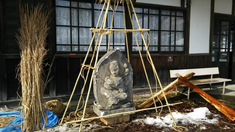 当ブログで1月16日(http://samidare.jp/orada2/note?p=log&lid=465371)にご紹介した村川透監督のドラマの撮影が、フラワー長井線のあちらこちらで行われている。羽前成田駅での撮影は2月13日に行われますが、美術スタッフは前日に会場入りして、監督の意向を踏まえた装飾の準備に取り掛かっていました。 何を作っているのかと見ると、雪の中のお地蔵さん風の銅像。地元のDIYから急遽調達して来たという竹を編んでいく様は職人技。駅舎の前にこんなオブジェが置かれたことはなく、イメージが浮かばない。すると「雪をまぶしてからの姿を見てみて。」と話してくれた。 某缶コーヒーのコマーシャル風に言うと「ドラマは、それぞれのドラマで出来ている」ということか。しばらくの間、『ドラマのドラマ』を楽しんでみたいと思います。