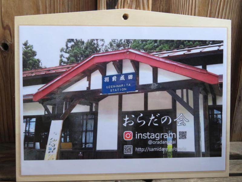 待合室に飾られたお知らせは、おらだの会のブログとインスタグラムのQRコード。携帯がいつの間にかスマホになり、「つぶやいた」や「インスタ映え」が日常会話に登場する時代です。おらだの会の年寄りも、訳が分からないながら、世の中の一番後ろをふらりふらりついて行こうとしています。老眼鏡をかけながらの試行錯誤ですので、不出来の点はご容赦ください。なおインスタグラムの中には、会員の友人が制作してくれた羽前成田駅の春のイメージ動画があります。どうぞご覧になってください。さてさて令和元年は、おらだの会にとって「IT元年」になりそうな予感です。それはさておき、明日の11時半から駅前で花見会ですよ!