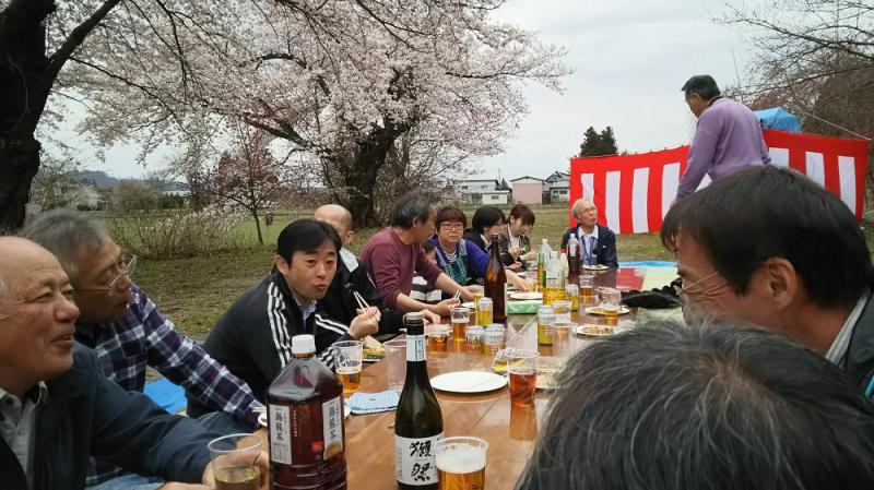 そして花見の宴がスタート。鉄道写真家の広田さん、米屋さんなど関東からのお客様も含めての交流会です。東京在住の大学3年生も、成田駅に再訪。近所のお孫さんも参加してくれて、ほのぼの楽しい時間となりました。桜の下で酒を飲むのも「記憶の継承」なのかもしれないし、私たちの中の「美しき村の記憶」なのかもしれない。
