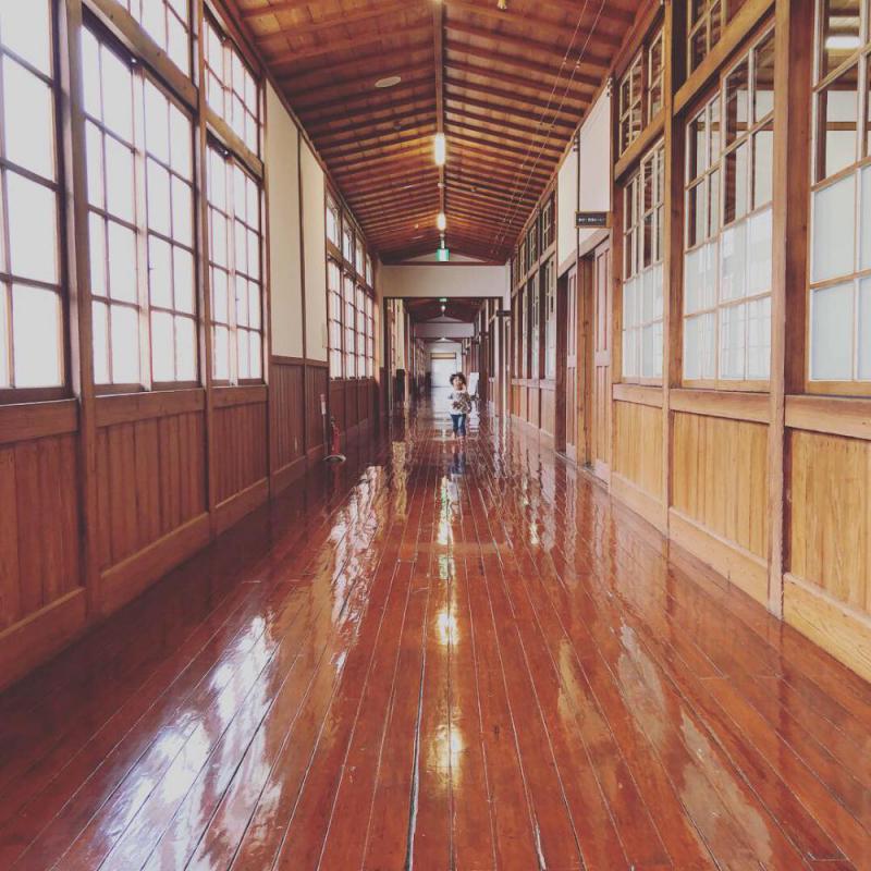 旧長井小学校第一校舎がリニューアルオープンしました。廊下を思いっきり走るチャンスです。