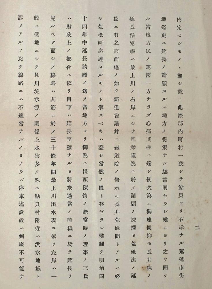 請願書では、「(郡長の話を)聞ける当地方民の驚愕一方ならず。心痛その極に達し候」として、憤懣と不信感を列挙するのである。そもそも長井線の延長予定線は最上川の右岸であり、かつ衆議院で採択された請願も、鉄道会議や鉄道院の告示も長井荒砥間とあり、荒砥町まで達するのは当然のことと理解される。明治44年中、延長請願のため鉄道院に出向いて陳情した際、当時の理事の3氏は、財政上の都合により今は延長できないが、将来適当の時機に延長すること。その際のルートは、30余年間の最上川出水表により、左岸は一般に低地で水害多く殊に鮎貝村付近は洪水地域と認められ、線路には不適当でありかつ停車場設置も到底不可能である、と言ったではないか。 掲示した新聞記事は、置賜実行委員会と称する団体が、鉄道院に請願に行った際の米沢市長二村忠誠氏(後に小林源蔵氏と衆議院選挙を争う。)の談話である。鉄道院理事3人の話が、この請願の時であったかはもちろん不明である。最後の「例年通り貴衆両院への請願を取りまとめ中」との記述から、継続して要望していたことが伺える。 【請願書資料提供:ふるさと資料館(南陽市宮内)】【新聞記事提供:米沢日報(明治44年12月7日)】