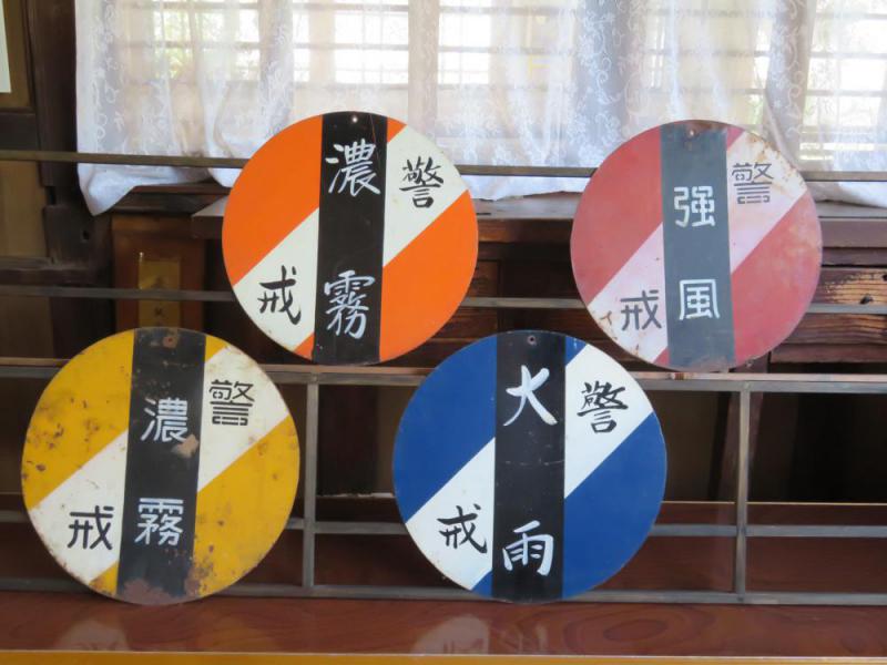 ちょっと長めの夏休みをいただき、記事のアップも休んでおりましたが、明日から9月、改めて活動を再会いたしますのでよろしくお願いしたします。 さて、現在、駅舎内では成田駅に保存されている昔の看板や山形鉄道にかかわる品物などを展示しています。これをきっかけにして、駅舎に残っている大事な宝物を記録・整理したいと考えています。 第1回目は、お天気警報盤4枚です。手書きのものとタイプ系があります。それぞれの制作年代や駅舎のどこに掲げていたのかなど、ご存知の方がおられれば教えてください。また、これをもとにして、ユニークな缶バッチを販売している鉄道会社もあります。いろいろな活用方法があるようです。