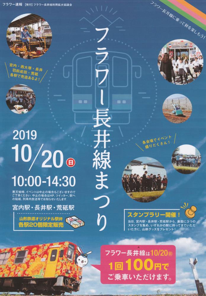 昨日からラグビーワールドカップがスタートし、日本中が盛り上がっていますが、長井も秋のイベントで盛り上がっています。そんな中、令和最初の長井線祭りのポスターが出来上がったようです。今年は10月20日(日)午前10時から午後2時半まで。広田泉さんのミニ写真展やもっちぃ写真展、スタンプラリーなどの新事業も計画されているようです。成田駅では長井高校写真部の写真展、縄文太鼓の演奏、キノコたくさんの芋煮で皆さんをお待ちしています。どうぞお楽しみに!。