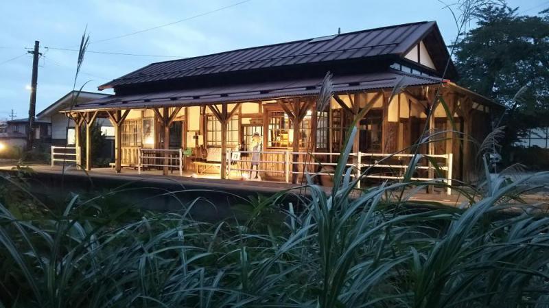 イベント3連発の第1弾は、19日の「鉄道写真家 広田泉さんと行く フラワー長井線夜の撮影会ツアー」。雨が心配されましたが、撮影会が始まる午後6時頃からは雨も上がり、ライトアップされた羽前成田駅、そして野川橋梁での撮影に挑みました。投光器の配置や撮影ポイントは、広田さんの指導を得て行いました。投光器に照らされた駅舎には、昼とは一味違う風格が漂い、私たちも改めて楽しむことができました。ツアーに参加された皆さん、お疲れさまでした。そして、SNSなどにアップしていただければ幸いです。
